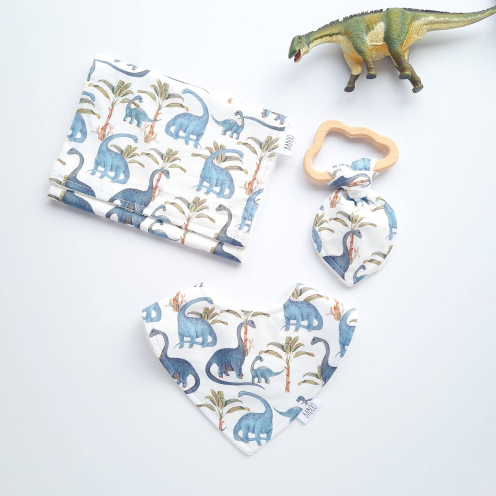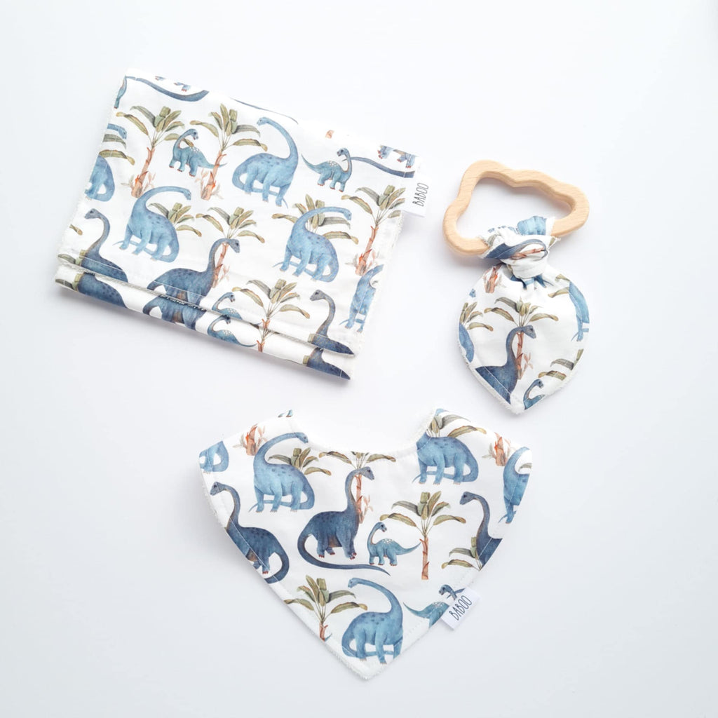 Includes a matching dribble bib, a teether and a burp cloth comes beautifully packaged
