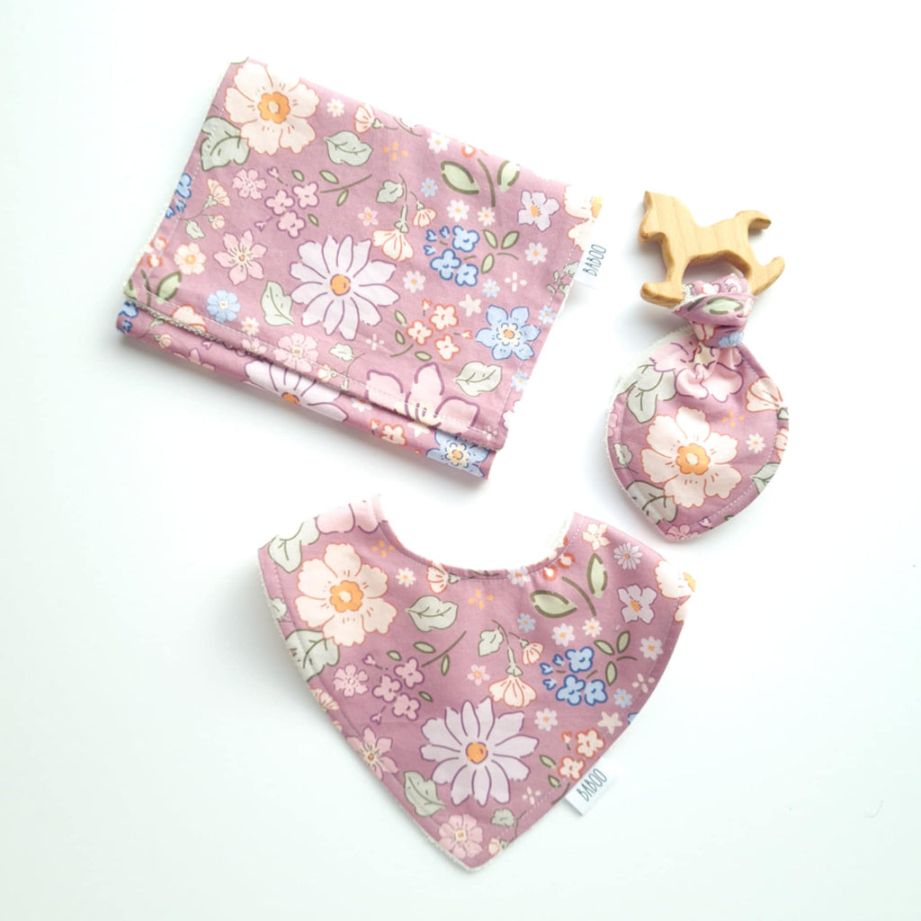Includes a matching dribble bib, a teether and a burp cloth comes beautifully packaged