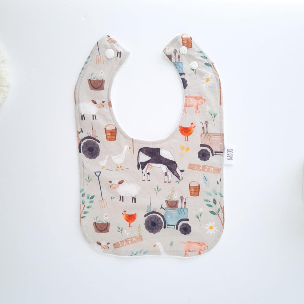 This modern feeding bib is made from cotton and backed with a soft bamboo/organic cotton blend terry toweling, and also two industrial strength snaps to adjust as they grow. They cover a large area for this messy moments and are really absorbent!