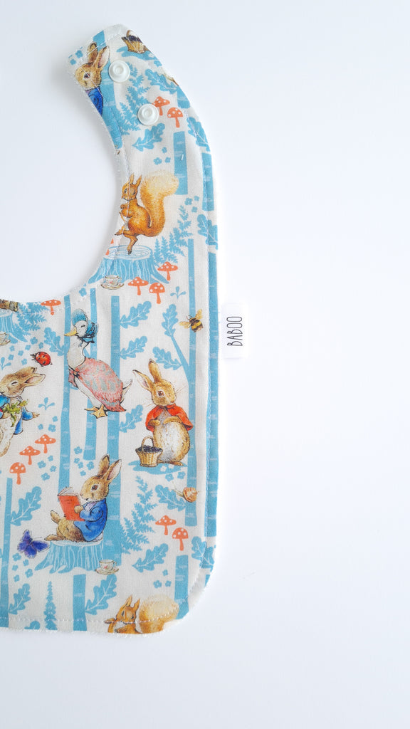 This modern feeding bib is made from cotton and backed with a soft bamboo/organic cotton blend terry toweling, and also two industrial strength snaps to adjust as they grow. They cover a large area for this messy moments and are really absorbent!
